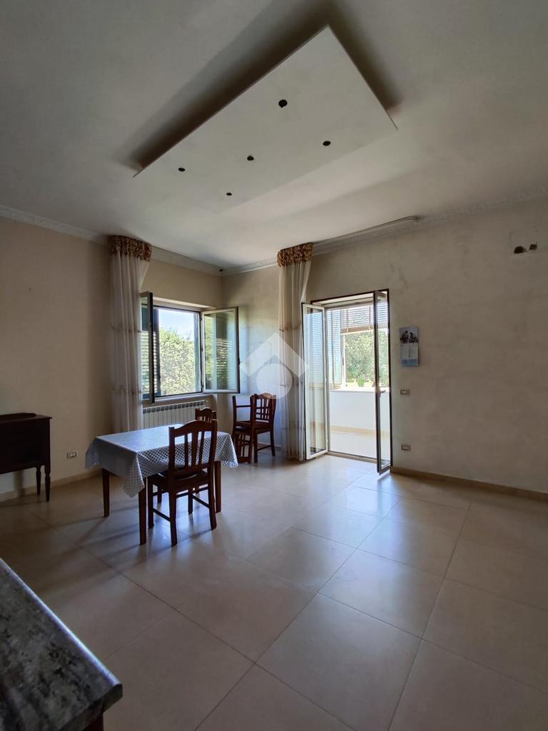 Subito dopo, vi è l'ampia zona living; questa gode di doppio affaccio angolare, di cui un'ampia finestra e l'affaccio sul balcone leggermente terrazzato e verandato. Sul balcone troviamo anche un vano ove sono disponibili gli impianti per la creazione di una lavanderia o di una futura cucina esterna.