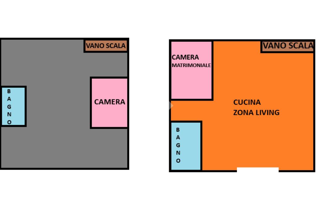 Ingresso in corridoio ove vi troviamo il primo accessorio e la cameretta; nel secondo livello è presente il cuore della casa, con una generosa cucina living e secondo bagno con camera matrimoniale con il suo affaccio interno alla soluzione.