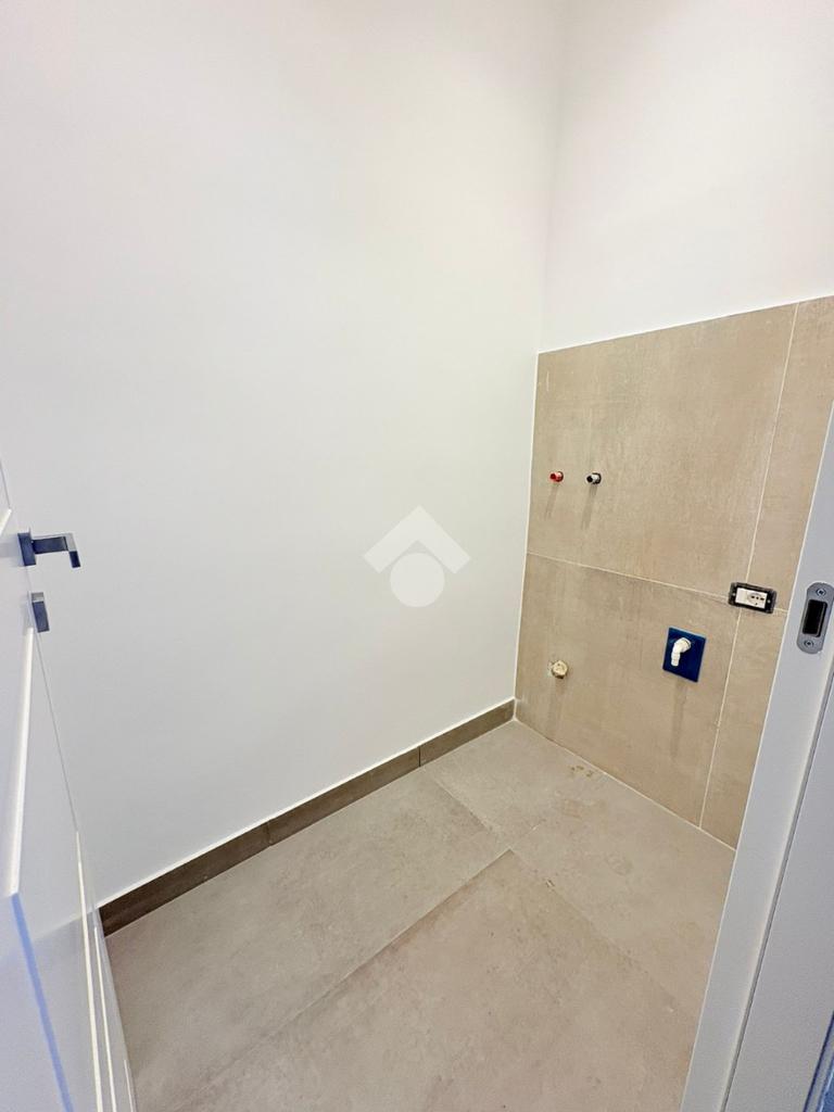L’ingresso si apre su un’ampia e luminosa zona living con cucina a vista, caratterizzata dalla presenza di un comodo balcone leggermente terrazzato che rende l’ambiente arioso e funzionale anche per momenti di relax. A servizio della zona giorno è presente anche un pratico vano lavanderia.