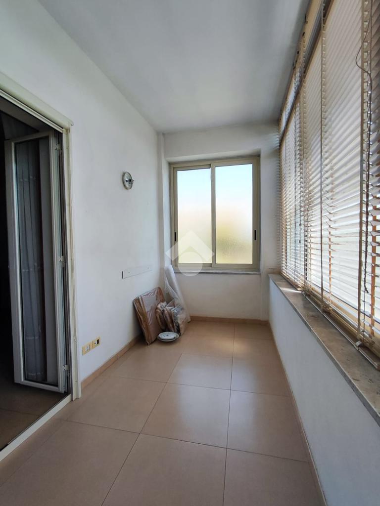A seguire vi è un'ampia zona living caratterizzata da un esposizione angolare grazie ai vari punti luce e all'ampia balconata presente. La balconata in questione, leggermente terrazzata, è attualmente verandata e presenta un vano attrezzato con gli appositi impianti per poter essere adibito come cucinotto.