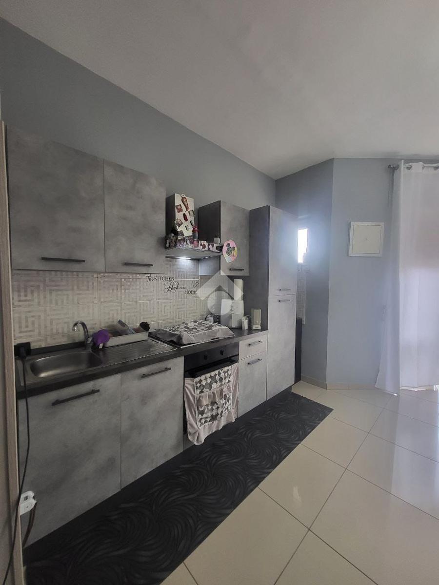 Presenta un ingresso in un piccolo disimpegno che si apre poi sull'ampia cucina. Questa gode del primo affaccio su un balcone privato.