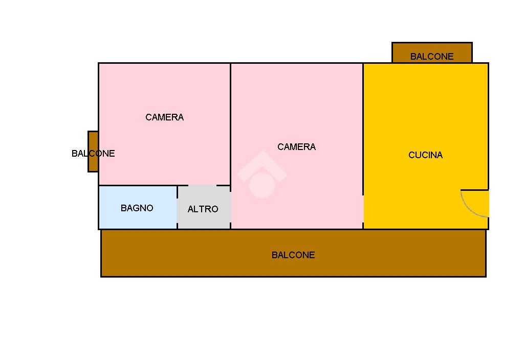La soluzione a seguire ha un secondo vano molto ampio e infine, tramite un piccolo disimpegno l'ultimo vano leggermente più piccolo, dotato anch'esso di un balcone, in questo caso romano ed il bagno dotato di finestra.