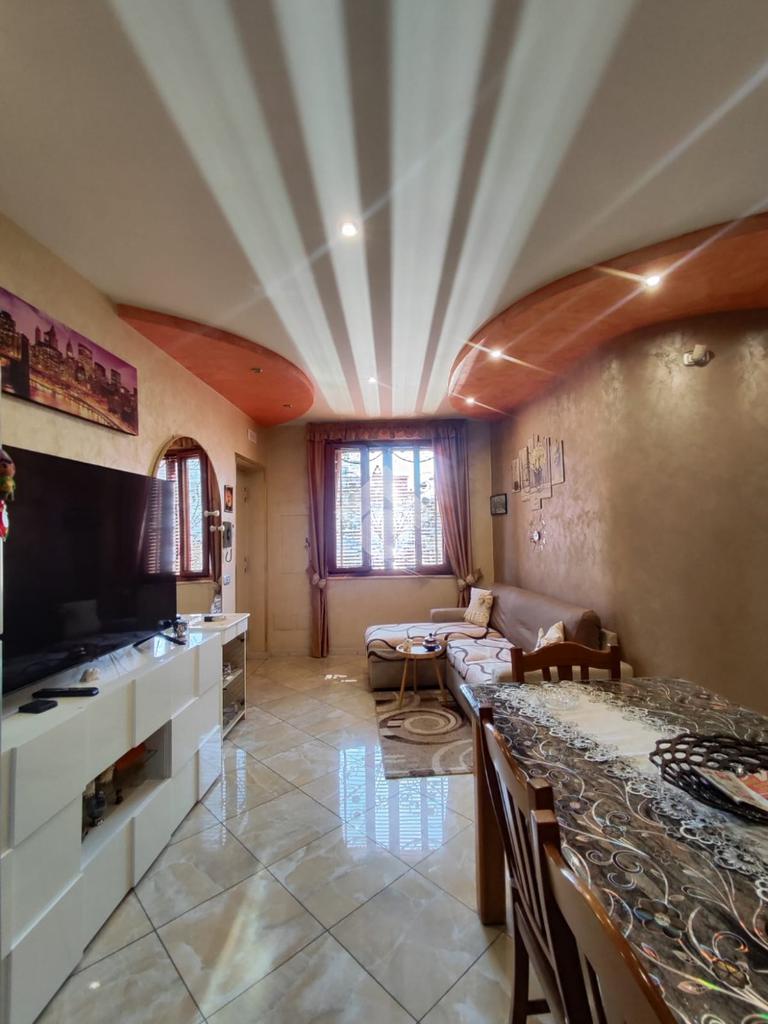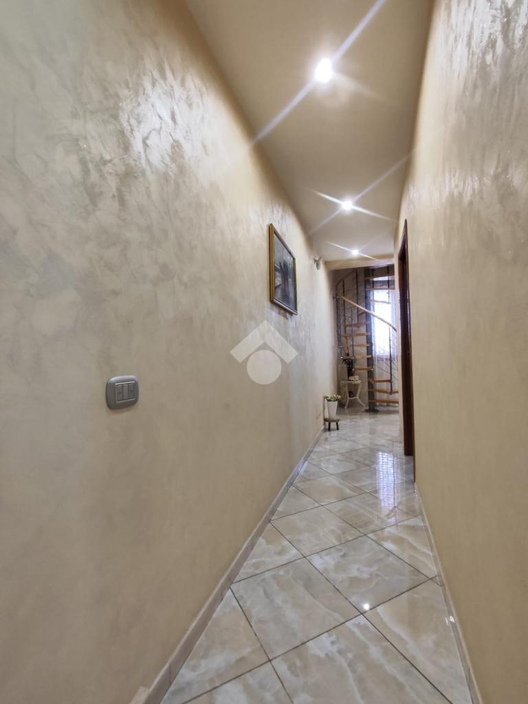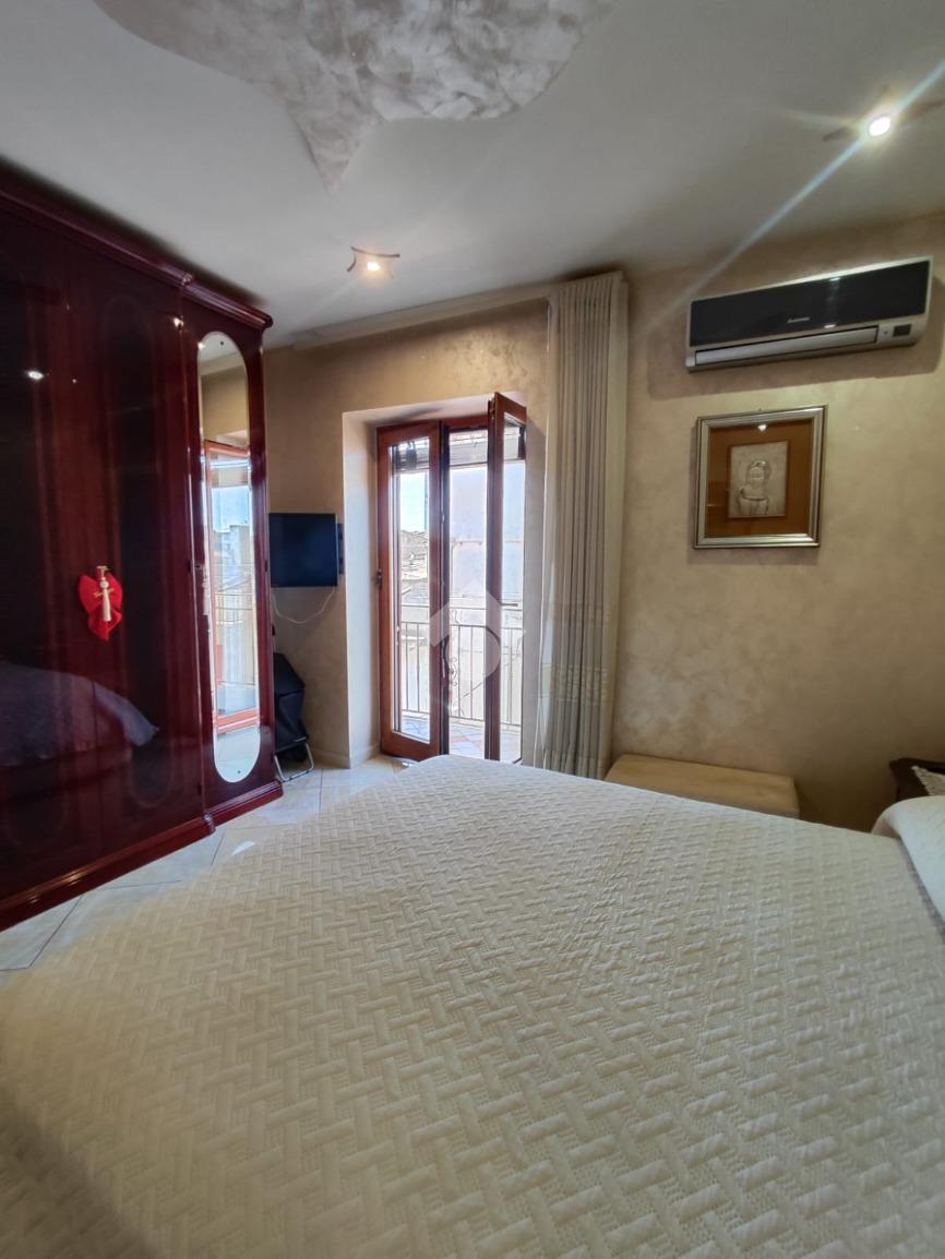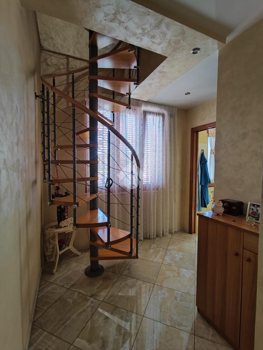 L'appartamento principale, completamente ristrutturato, si sviluppa su tre livelli, garantendo ampi spazi e comfort. La disposizione interna comprende tre bagni, assicurando praticità per tutta la famiglia. Al primo livello troviamo l'ingresso in un'ampia zna iving con finestra interna e affaccio su balcone esterno; qui è ubicato il primo bagno dotato di finestra e vasca. Al piano superiore invece, vi è un corridoio che da accesso alla camera matrimoniale con balcone privato esterno; a seguire vi è un vano lavanderia seguito da il secondo bagno anch'esso dotato di finestra e doccia. Infine tramite una scala a chiocciola, accediamo all'ultimo livello ove è presente la cameretta che dispone del proprio bagno privato.