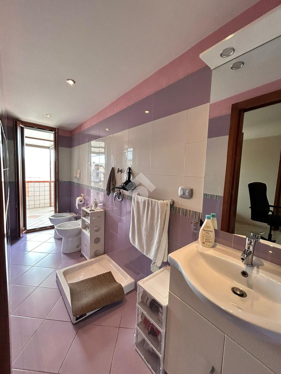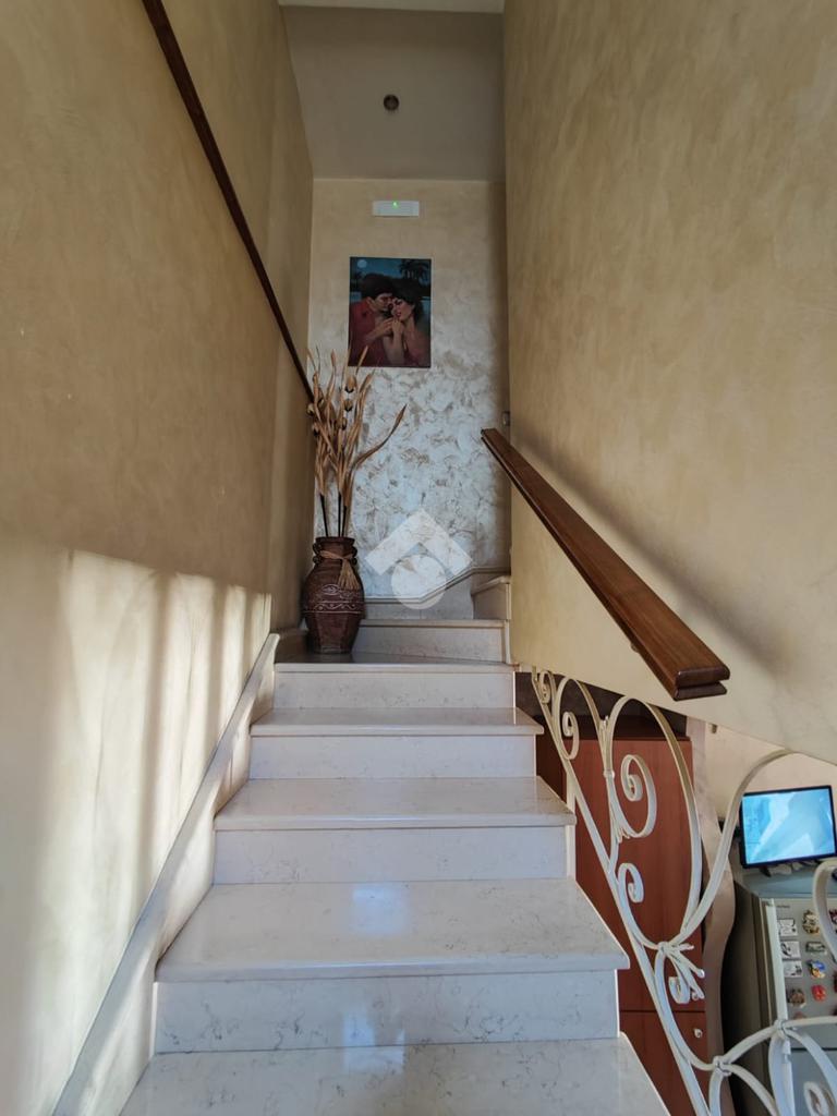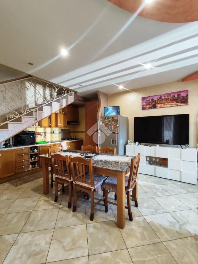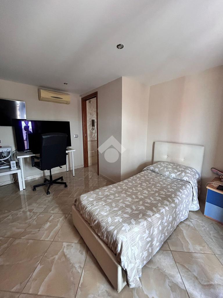L'appartamento principale, completamente ristrutturato, si sviluppa su tre livelli, garantendo ampi spazi e comfort. La disposizione interna comprende tre bagni, assicurando praticità per tutta la famiglia. Al primo livello troviamo l'ingresso in un'ampia zna iving con finestra interna e affaccio su balcone esterno; qui è ubicato il primo bagno dotato di finestra e vasca. Al piano superiore invece, vi è un corridoio che da accesso alla camera matrimoniale con balcone privato esterno; a seguire vi è un vano lavanderia seguito da il secondo bagno anch'esso dotato di finestra e doccia. Infine tramite una scala a chiocciola, accediamo all'ultimo livello ove è presente la cameretta che dispone del proprio bagno privato.