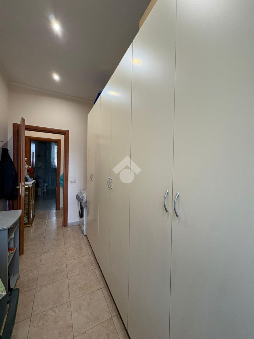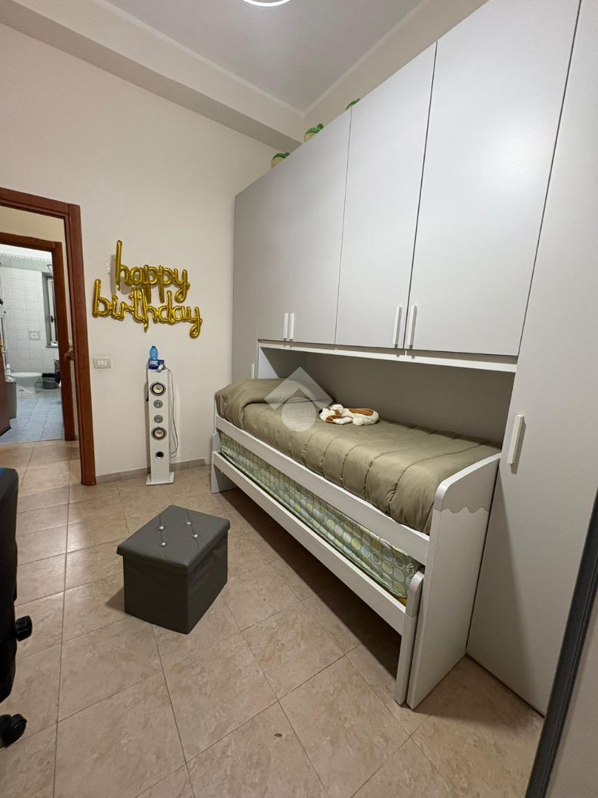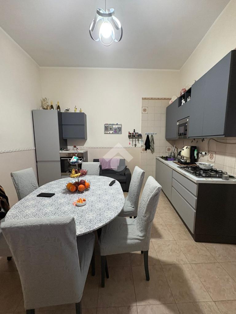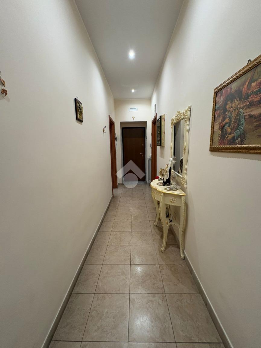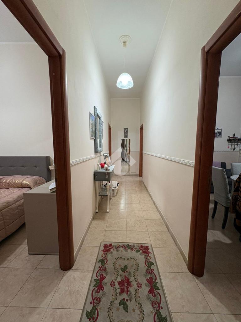sulla sinistra si trova una spaziosa camera matrimoniale, mentre sulla destra è presente una cucina ampia con balcone e affaccio esterno che garantisce una buona luminosità durante l’arco della giornata. Proseguendo lungo il corridoio, è presente il bagno dotato di vasca e finestra, e una comoda cameretta.