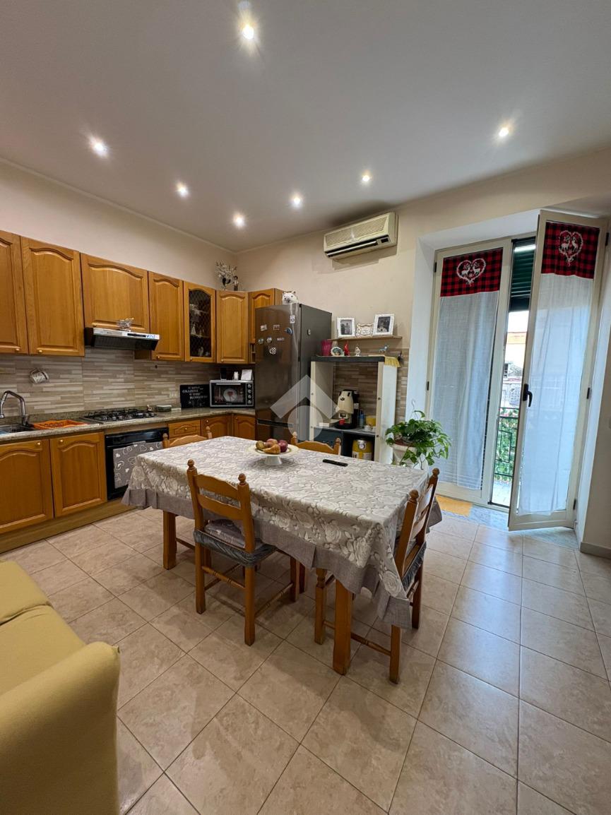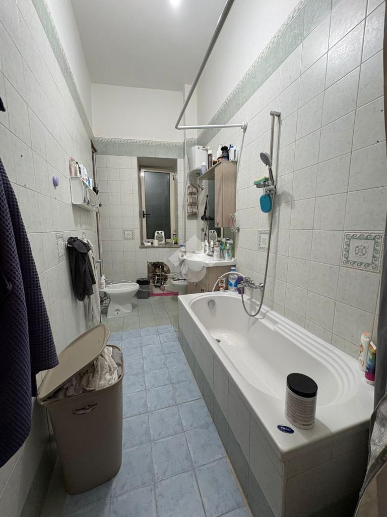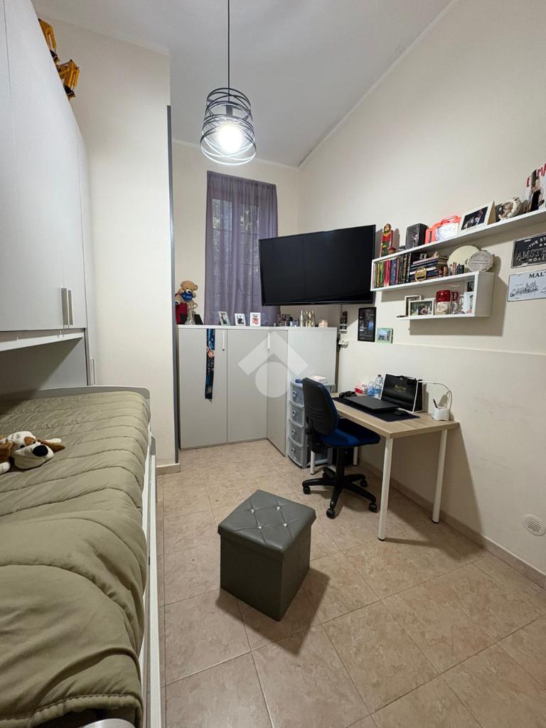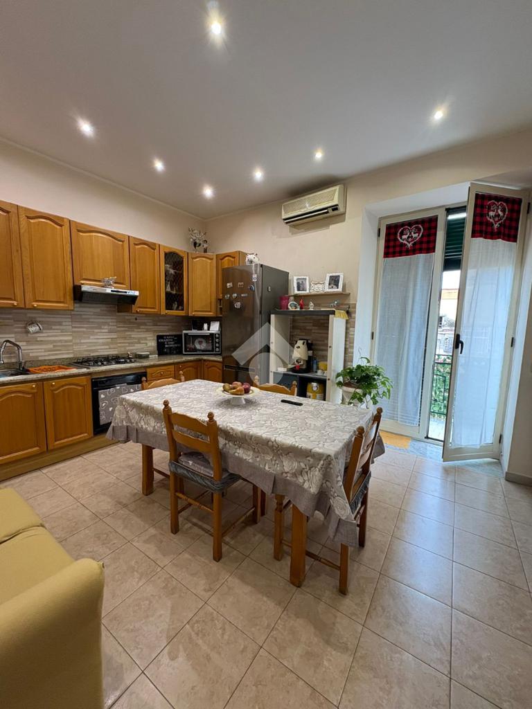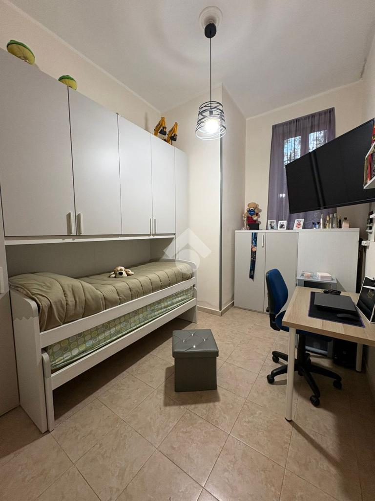 sulla sinistra si trova una spaziosa camera matrimoniale, mentre sulla destra è presente una cucina ampia con balcone e affaccio esterno che garantisce una buona luminosità durante l’arco della giornata. Proseguendo lungo il corridoio, è presente il bagno dotato di vasca e finestra, e una comoda cameretta.