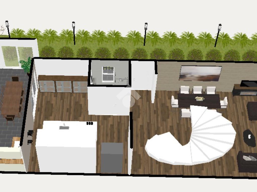 Distribuita su tre livelli per una superficie complessiva di circa 300 mq, la villa si distingue per l’armonia degli ambienti e per la cura dei dettagli architettonici, tra cui spiccano le raffinate scale ad ellisse, vero elemento di design che dona carattere e prestigio all’intera proprietà.